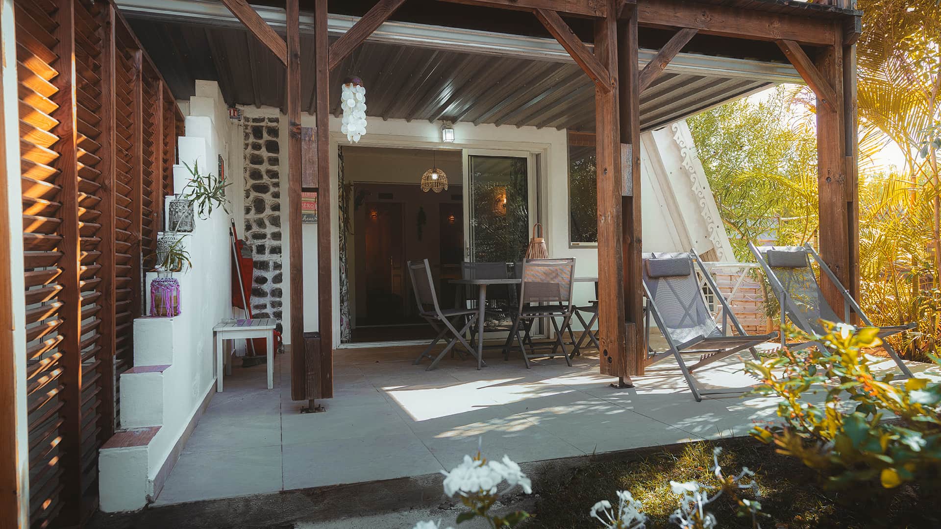 * 1 terrasse couverte aménagée avec table/chaises et chiliennes